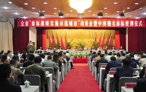 李文卿指出,近年来,市委、市政府高度重视商标战略实施工作,坚持以“工业强市”和“振兴装备制造业”为抓手,狠抓商标培育,着力增强注册商标数量、提升注册商标质量、提高商标工作效率上下功夫,全市商标战略实施工作取得了新的成效。目前全市商标注册申请数量132件,有效注册商标1374件,注册商标实现了质和量的飞跃。今年6月,我市还被国家工商总局命名为甘肃省唯一的国家商标战略实施示范城市。