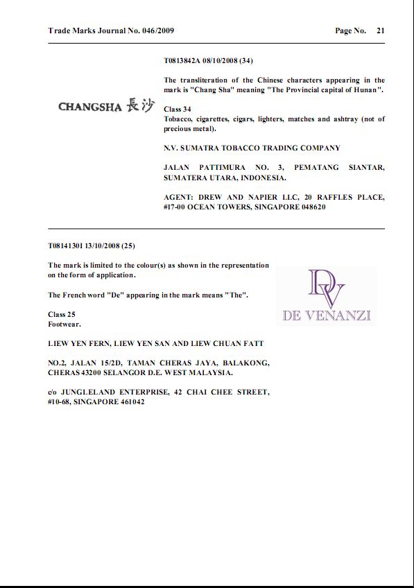 佳茂公司国际部监测,“长沙”在新加坡被抢注为商标2009-10-23 16:33:26 |